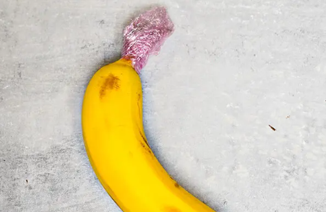 Обмотайте ножку банановой вязки полиэтиленовой пленкой или скотчем, чтобы продлить срок хранения. Таким образом, газ, ответственный за созревание, блокируется на стебле и не достигает остального банана.