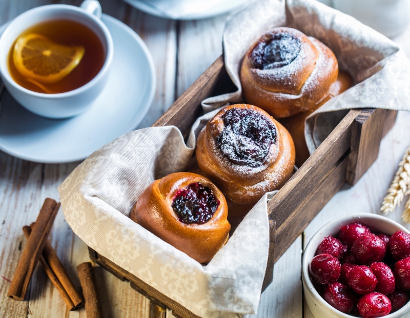 Достаем аппетитные пирожки с вишнями и даем им немного остыть, затем подаем к столу и наслаждаемся вкусом.