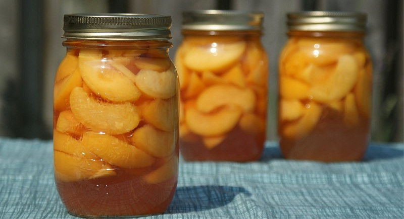 Затем достаем банки с персиками и герметично закрываем крышками. Переворачиваем их вверх дном и накрываем теплым одеялом или пледом. Ждем, пока консервированные персики полностью остынут. Затем убираем их в темное прохладное место до зимы.