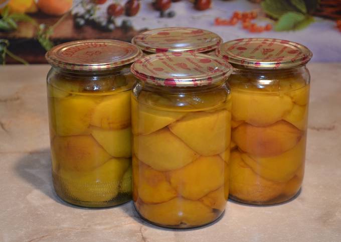 Ингредиенты: очищенные персики (3 кг), вода (1 л), сахар (750 г), мед (250 г), ром (по желанию).