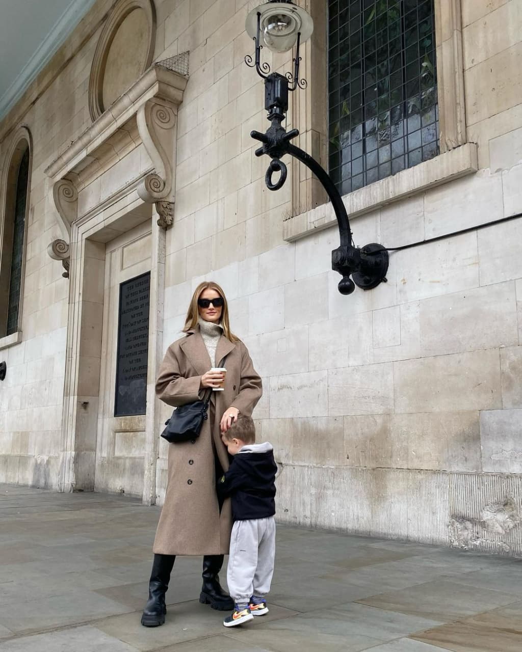 Следующий образ Роузи выглядит сдержанно, но при этом его абсолютно точно можно назвать многослойным. Тренч размера оверсайз идеально дополнили сапоги на грубой подошве, солнцезащитные очки и клатч. В таком виде знаменитость отправилась на прогулку со своим маленьким сыном.