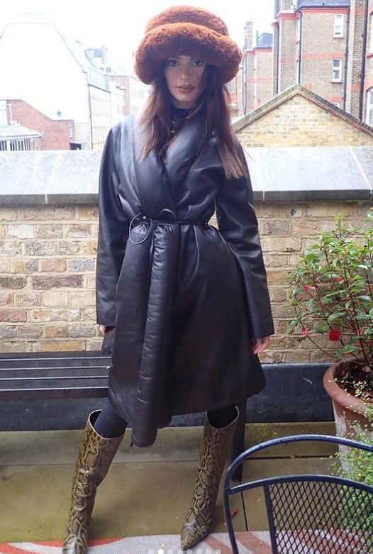 Американская модель и актриса Эмили Ратаковски отдала предпочтение дутому оверсайз-пуховику, который скомбинировала с объемной шапкой из коричневого меха. Высокие сапоги с леопардовым принтом сделали этот образ максимально эффектным.