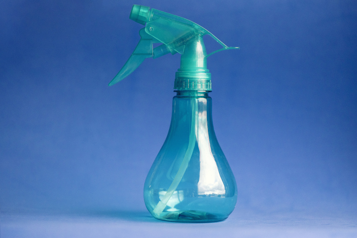 Понадобится: вода (2 стакана), белый уксус (1/4 стакана), медицинский спирт (1/4 стакана), кукурузный крахмал (1 ст.л.), эфирное масло (5-10 капель) - по желанию.