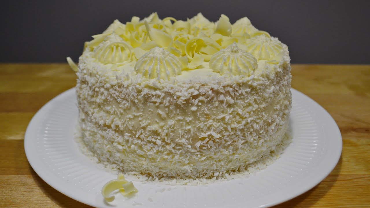 Перед подачей снимаем пищевую пленку и по желанию украшаем. Можно посыпать натертым или растопленным шоколадом, кокосовой стружкой, сахарной пудрой, украсить фруктами или ягодами или приготовить еще одну порцию крема и смазать при помощи кондитерского мешка с насадкой верх и все бока торта.