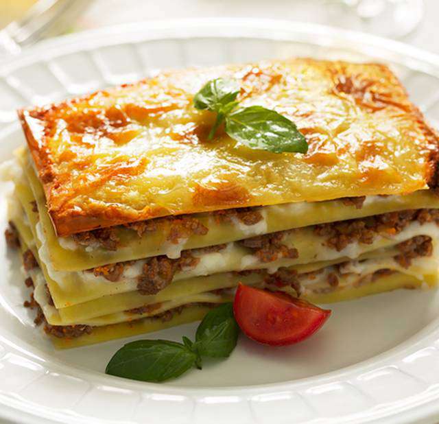 Рецепт лазаньи: Сначала измельчите чеснок с луком и обжарьте минуты три. Добавьте туда фарш, готовьте на среднем огне еще минут двадцать. С томатов необходимо снять кожицу, а затем измельчить. Посыпьте их перцем и солью, можно добавить сушеный орегано. Тушите еще минут пять вместе с остальными ингредиентами.