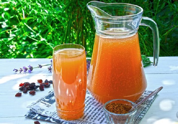 Процеживаем напиток через 2-3 слоя марли, по желанию добавляем сахар. Переливаем в пластиковые бутылки – так, чтобы оставалось 5-6 см свободного пространства.Перед закручиванием крышкой стенки бутылки лучше слегка сдавить, чтобы жидкость оказалась возле самого горлышка, это предотвратит доступ кислорода. Оставляем в таком виде на 3-4 часа при комнатной температуре. За это время бутылки должны выпрямиться, а в напитке появятся пузырьки газа.