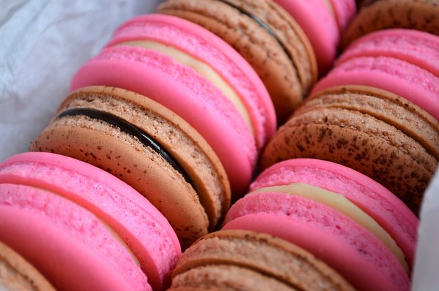 Итак, для приготовления десерта вам понадобятся следующие продукты: миндальная мука (2/3 стакана), сахарная пудра (1,5 стакана), яичные белки (3 шт.), сахар (5 ст. л.), ванильный экстракт (1 ст. л.), пищевой краситель (на ваше усмотрение). Крем на ваше усмотрение. Можно также использовать джем, сгущенку, шоколадную пасту и так далее.