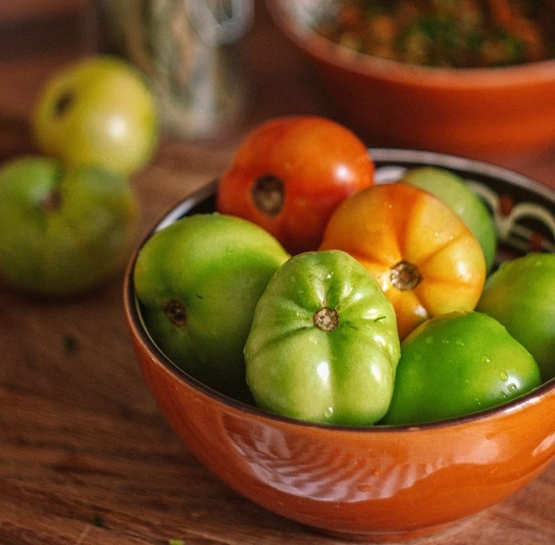 Ингредиенты: зеленые помидоры (1 кг), морковь (1-2 шт.), любая зелень (укроп, петрушка, кинза, базилик), чеснок (1 головка).