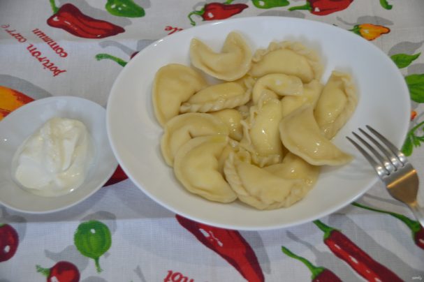Подаем вареники со сметаной.