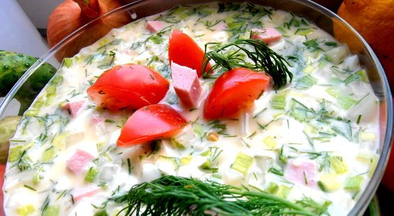 Итак, дам понадобятся следующие ингредиенты: березовый сок (300 мл), огурцы (1 шт.), отварной картофель (3 шт.), вареные яйца (3 шт.), колбаса (200 г), лук зеленый (по вкусу), укроп (по вкусу), соль (1 ч. л.), горчица (1 ч. л.), майонез (1 ст. л.), лимон (по вкусу), помидоры (по вкусу).