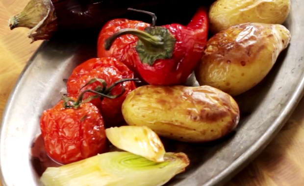 Продукты: овощи на ваш вкус, специи, растительное масло. Это наиболее простой рецепт, ведь вам нужно только помыть овощи, промокнуть их от влаги, застелить пергаментом противень, переложить на него овощи, полить их маслом и посыпать специями. Можно также немного натереть шкурки чесноком, чтобы блюдо было более ароматным. Затем следует просто отправить противень в духовку на 20 минут, перевернуть овощи, поставить назад и готовить еще минут 10-15.