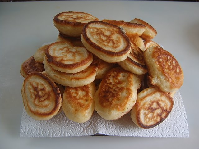 Ингредиенты: сыворотка (220 мл), мука (260 г), сахар (3 ст. л.), сода (0,5 ч. л.), соль (по вкусу), растительное масло (для жарки).