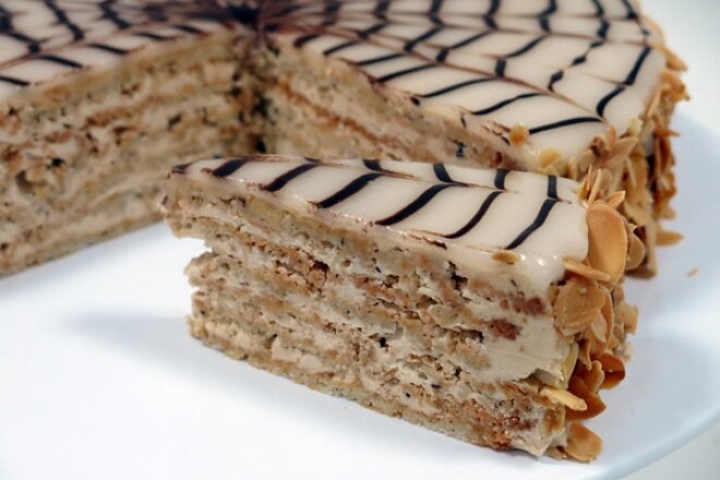 Эстерхази – это миндально-шоколадный торт, популярный в Венгрии, Австрии и Германии. Назван в честь венгерского дипломата Пала Антала Эстерхази, министра иностранных дел Венгрии во время революции 1848-1849 годов. Изначально этот торт готовили из миндаля, но в последние 100 лет для десерта чаще всего используют грецкие орехи.