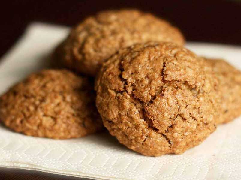Ингредиенты: овсяные хлопья мелкого помола (100 г), масло сливочное (100 г), яйцо (1 шт.), сахар (30 г), коричневый сахар (40 г), мука (70 г), разрыхлитель (1 ч. л.), корица (1 ч. л.), соль (щепотка).