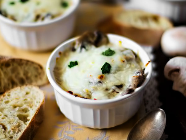 Шаг 6: Когда сыр превратится в аппетитную корочку, жульен можно доставать из духовки и сразу же подавать к столу. Блюдо также можно украсить мелко нарезанной зеленью.