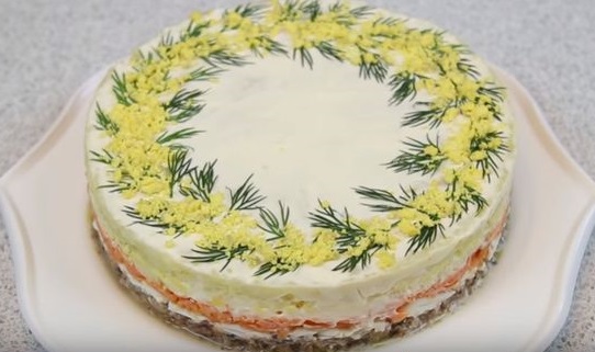 Также вы можете попробовать сделать Мимозу, заменив рыбную консерву на печень трески, сайру, сардину, скумбрию или тунец. Также блюдо можно разнообразить, самостоятельно приготовив, например, красную рыбу – для того, чтобы ее пожарить понадобится не более 10-15 минут.