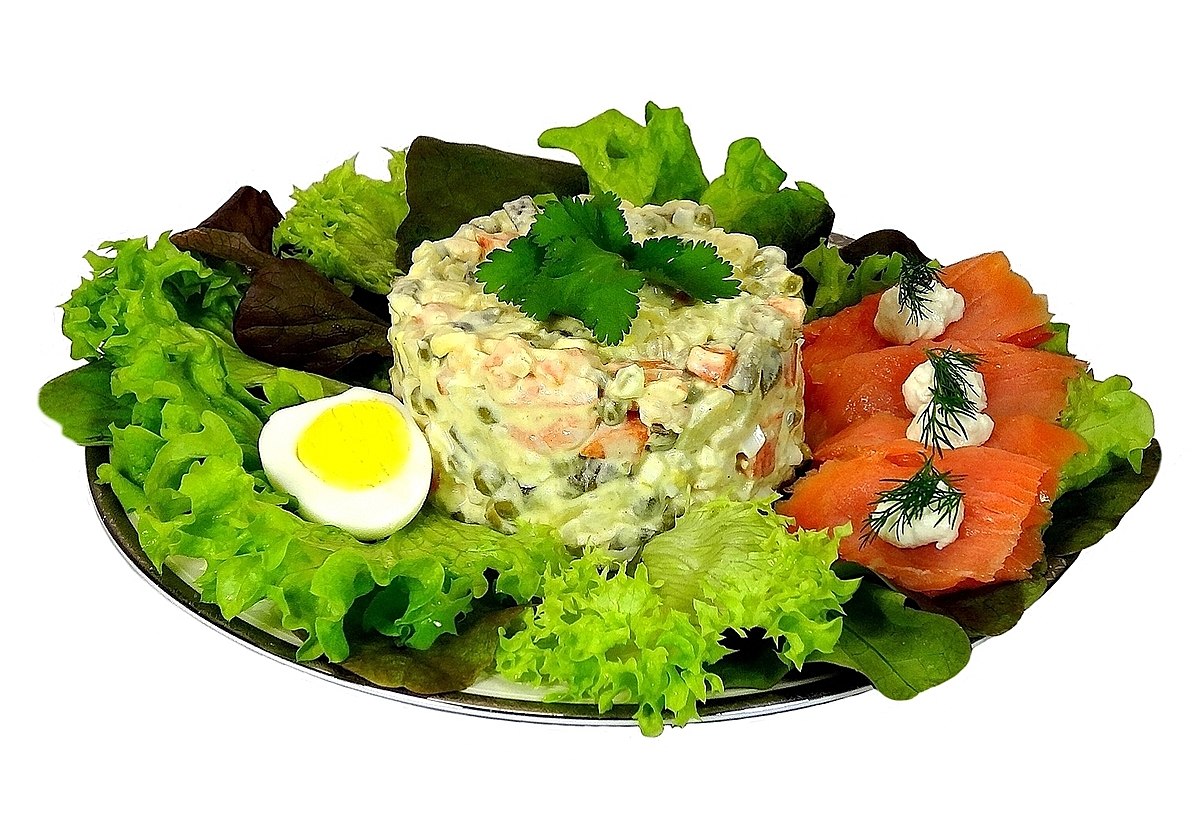 Оливье с красной рыбой на праздничный стол - как готовить