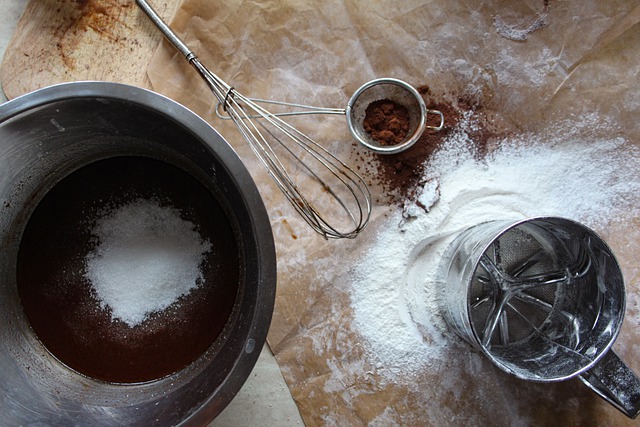 В большой миске смешиваем муку, какао-порошок и разрыхлитель.