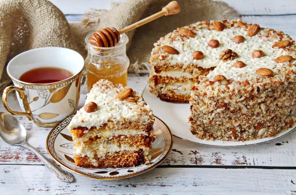 У каждой хозяйки есть фирменный рецепт домашних сладостей, которые она готовит на праздничные мероприятия. И если вы пробовали делать торт Наполеон, удивите своих родных и близких Медовиком с орехами. theLime делится с вами простым и вкусным рецептом.