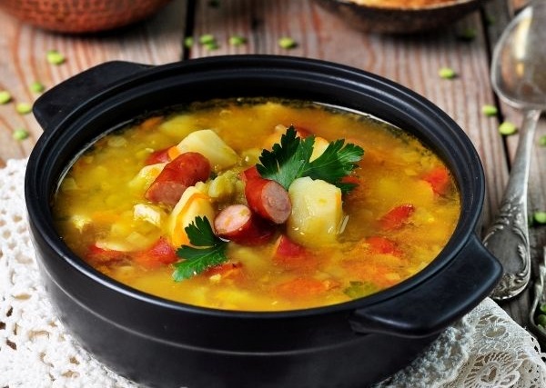 Каждая хозяйка старается разнообразить меню своей семьи вкусными и полезными блюдами. Особое внимание в рационе необходимо уделить первым блюдам. И если вы уже готовили куриный суп с чечевицей, на этот раз сделайте гороховый суп с охотничьими колбасками. theLime подобрал для вас простой рецепт.
