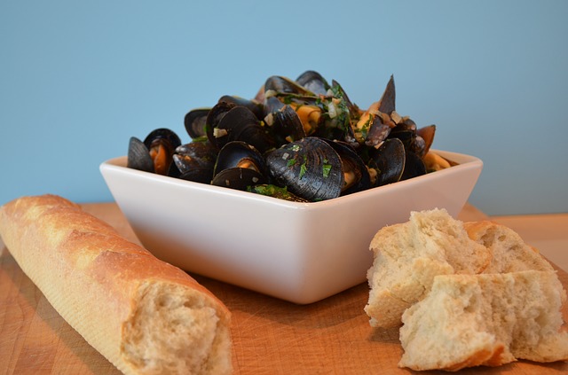 Ингредиенты: свежие мидии (1 кг), сливочное масло (100 г), лук (1 шт.), сливки (150 г), чеснок (6 зубчиков), петрушка (1 пучок), белое вино (100 мл).