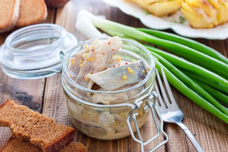 Достаем маринованную селедку и наслаждаемся аппетитной закуской.