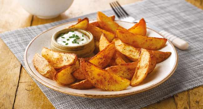 Ингредиенты: молодой картофель (1 кг), горчица (2 ч. л.), чеснок (5 зубчиков), сухой орегано (0,5 ч. л.), сухой базилик (0,5 ч. л.), сухой розмарин (0,5 ч. л.), паприка (0,5 ч. л.), карри (0,25 ч. л.), растительное масло (4 ст. л.), лимонный сок (0,5 шт.), соль, перец острый молотый.