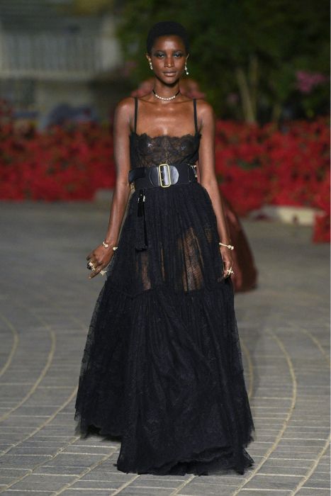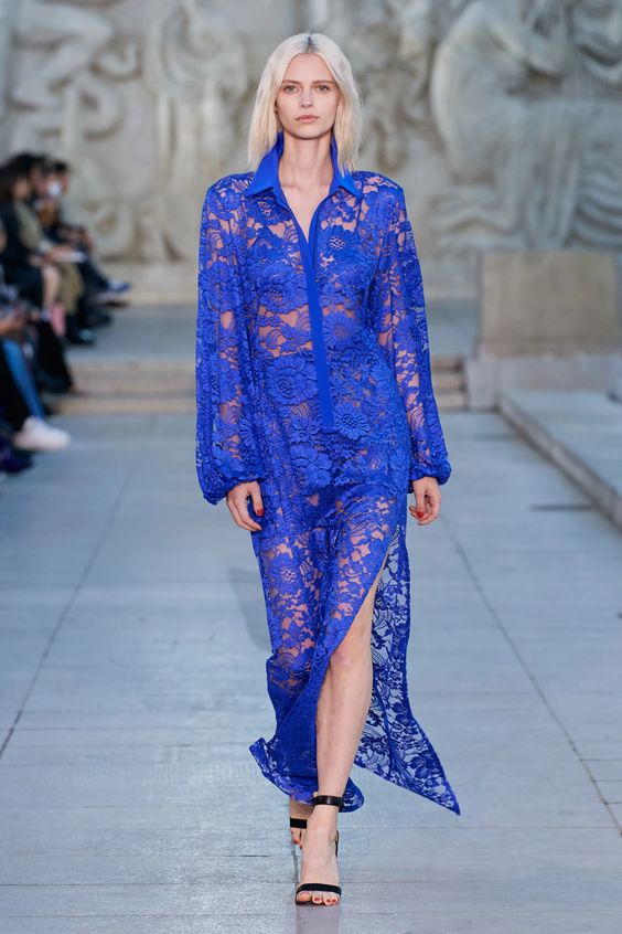 Дизайнеры в 2023 году предлагают платья с кружевной отделкой или наряды целиком выполненные из полупрозрачного кружева. В новых коллекциях можно увидеть готический гламур и бельевой стиль.