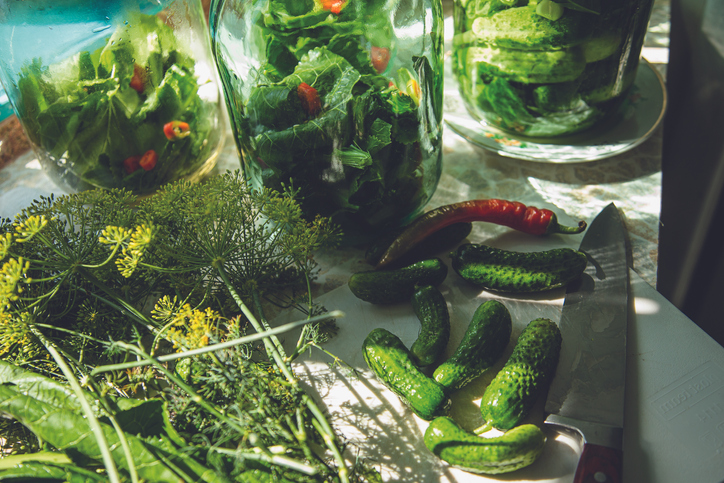 Июль - сезон молодых овощей, и хозяйки стараются закрывать их на зиму разными способами. Ранее мы рассказывали, как сделать популярный Нежинский салат из огурцов, а также делились рецептом маринованной спаржевой фасоли. Рекомендуем также приготовить хрустящие и умеренно острые квашеные огурцы, которые отлично подойдут для Оливье, рассольника или просто на закуску.