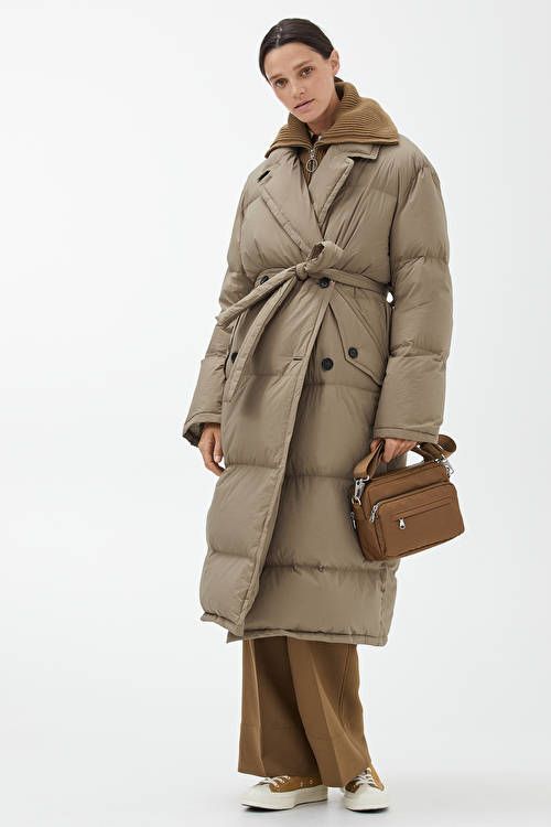 Один из наиболее популярных вариантов зимней куртки в 2023 году - пуховик с поясом и отложным воротником. Такая модель подчеркнет талию, сделает образ женственным и романтичным. Длинную куртку с поясом можно носить с ботинками, кроссовками или другой удобной зимней обувью.