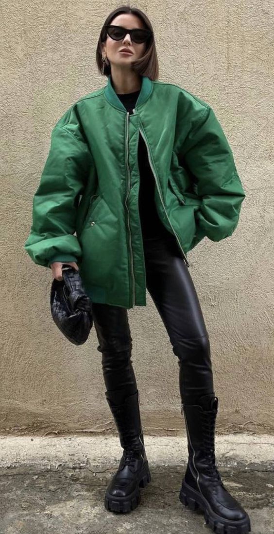 Эта модель куртки плотно закрепилась в трендах, поэтому уверенно перекочевала в зимний гардероб. Есть варианты укороченные, овресайз, стеганые и в разных расцветках. Бомбер зимний отлично смотрится как широкими брюками, так и с узкими джинсами. Также его можно носить с юбками, платьями и сапогами.
