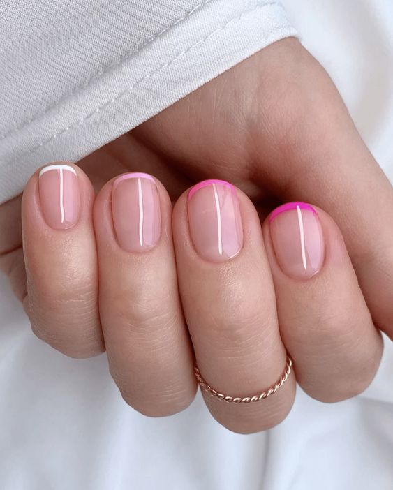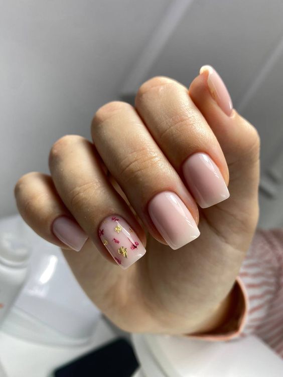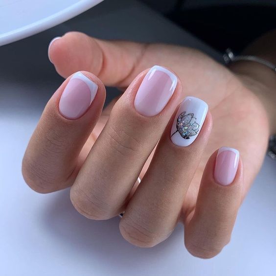 В трендах на 2024 год также нежный вариант классического французского маникюра – микрофренч. Для этого покрываем ногтевую пластину неярким бежевым или пастельно-розовым тоном лака, а кончик делаем очень тонким. Можно разнообразить такой дизайн разными оттенками гель-лака на кончике или же рисунком цветов.