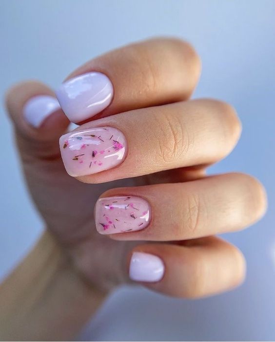 Еще один вариант весеннего нейл-арта – маникюр с сухоцветами. Сухоцветы – это высушенные живые цветы и листья разных форм, цветов и размеров. Их сушат и выравнивают специальным образом, чтобы они могли плотно прилегать к ногтевой пластине и не мешать в повседневных делах.