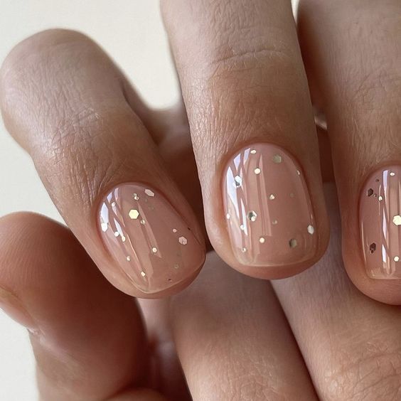 Беспроигрышный вариант на весну – нежный маникюр в бежевых или, как их еще называют, нюдовых оттенках. Дополнить нюд можно едва заметными блестками.