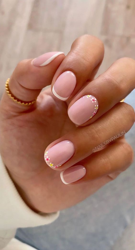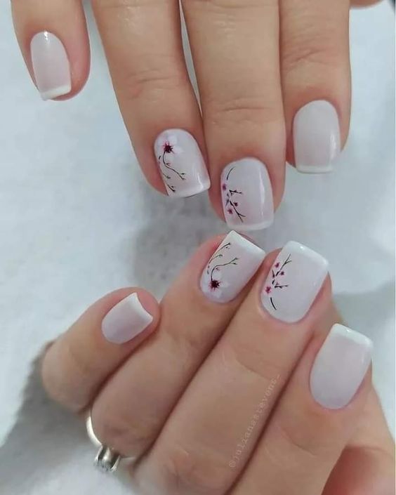 У многих весна ассоциируется с пробуждением природы. Поэтому вы можете сделать классический французский маникюр и дополнить его цветочными узорами. Сделать их можно, нарисовав от руки, с помощью стемпинга или же специальных наклеек.