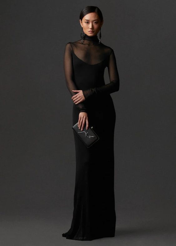 Черное облегающее платье с длинными рукавами - еще один модный вариант для выпускного вечера. Чтобы наряд не выглядел скучно, обратите внимание на модели с вырезами на плечах или талии, а также платья с шифоновыми рукавами.