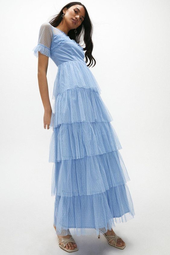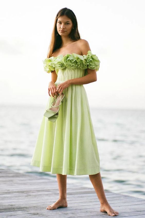 В 2023 году популярностью пользуются рюши и воланы в самых разных интерпретациях. Нарядно и стильно будут выглядеть платья, декорированные рюшами в зоне декольте, подола, рукавов, а также по всей длине юбки.