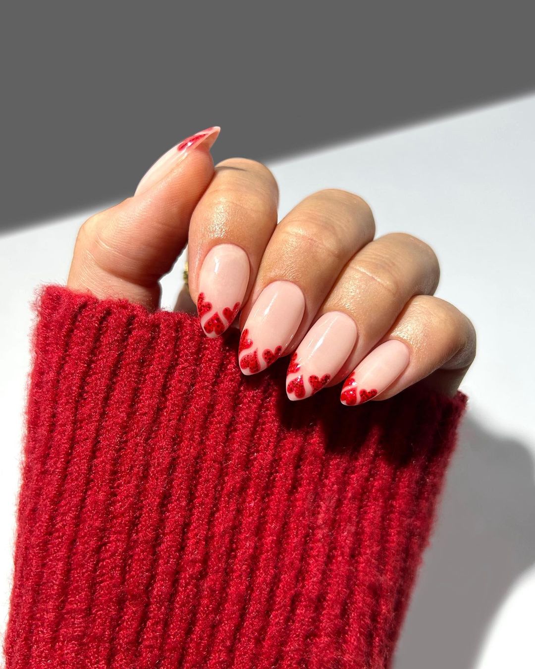 Тренд с сердечками смогут примерить и поклонницы французского маникюра. Для выполнения дизайна покройте ногти базовым цветом, а на кончике нарисуйте сердце: сначала блестящим бордо, затем - насыщенным красным. Сверху покройте глянцевым топом, и ваш маникюр на День влюбленных 2024 будет готов.