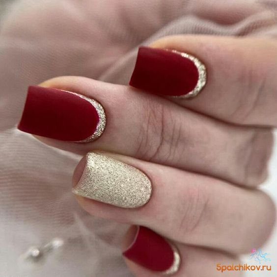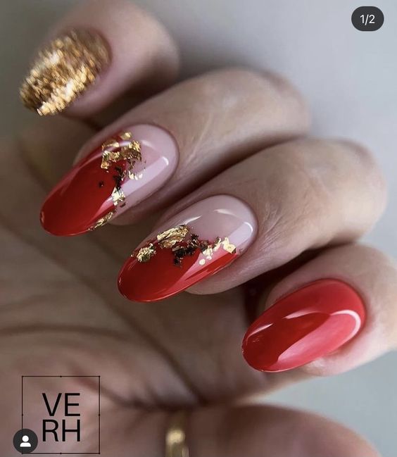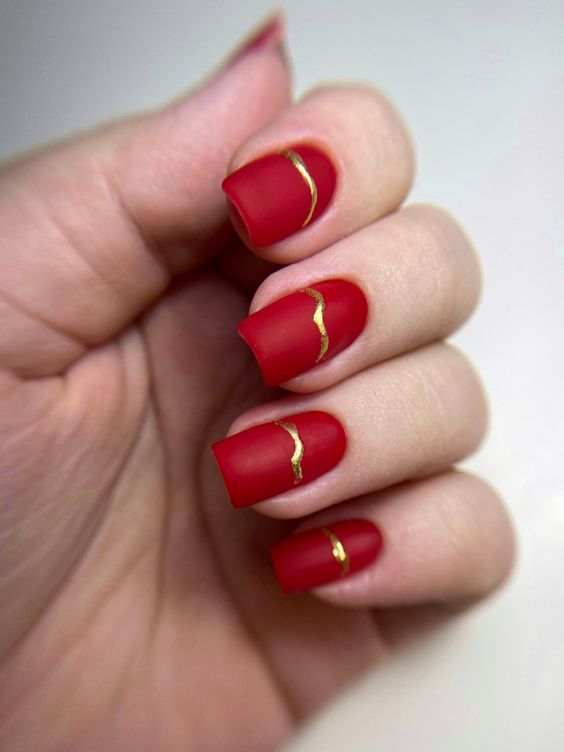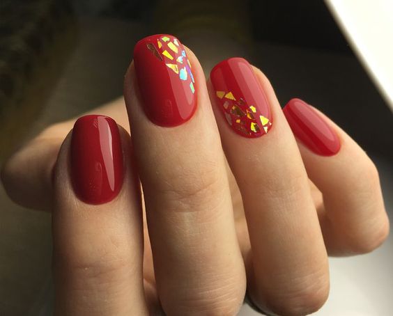 Красный маникюр с золотом