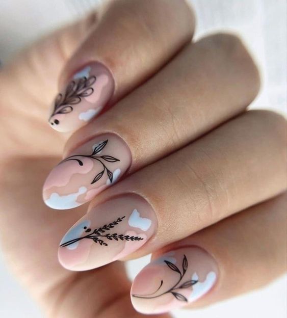 Еще один беспроигрышный вариант на весну – маникюр с цветами. Это может быть однотонное нюдовое покрытие с наклейками с цветочными или лиственными мотивами, которые также считаются трендом этого сезона.