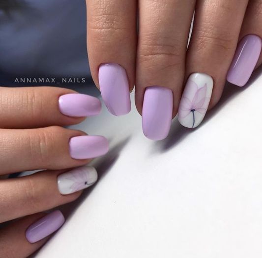 В сезон цветения сирени самое время украсить свои ногти нежным пастельным оттенком. Сиреневый цвет гель-лака будет красиво смотреться как на коротких, так и на длинных ногтях разной формы. Если вы не любите излишеств, сделайте однотонное покрытие. Или же один ноготь можно разнообразить стемпингом, дизайном с втиркой, чтобы получить хамелеоновый маникюр или, как его еще называют, хромированные ногти.