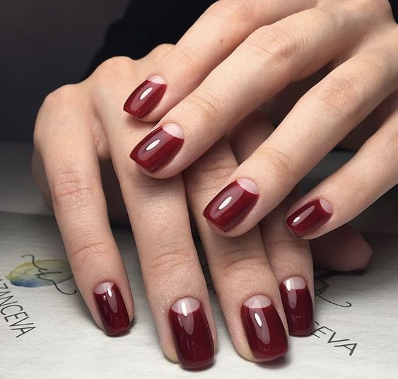 Лунный маникюр будет красиво выглядеть как в нюдовых оттенках, так и в ярких, например, в ярко-алом или бордовом. Лунку ногтя дополнительно можно украсить гель-лаком с блестками – такой нейл-арт будет выглядеть более празднично. Подойдет он для ногтей разной формы и длины.