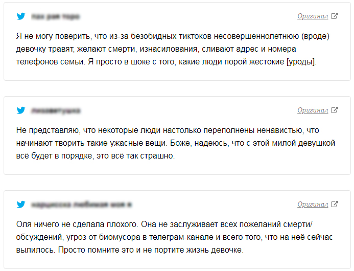 Защитники Оли начали массово публиковать посты с критикой ситуации, ведь, по их словам, "пожелания смерти - это не мнение", и так вести себя ни в коем случае нельзя.