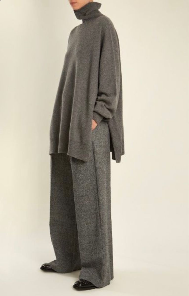 Трикотажные костюмы совсем не обязательно должны состоять из брюк и джемпера. В новых коллекциях дизайнеры предлагают варианты с удлиненными свитерами с высоким горлом. Такую теплую и уютную вещь вы не захотите снимать всю зиму. Кроме того, вы сможете выбрать ширину и длину свитера и брюк.