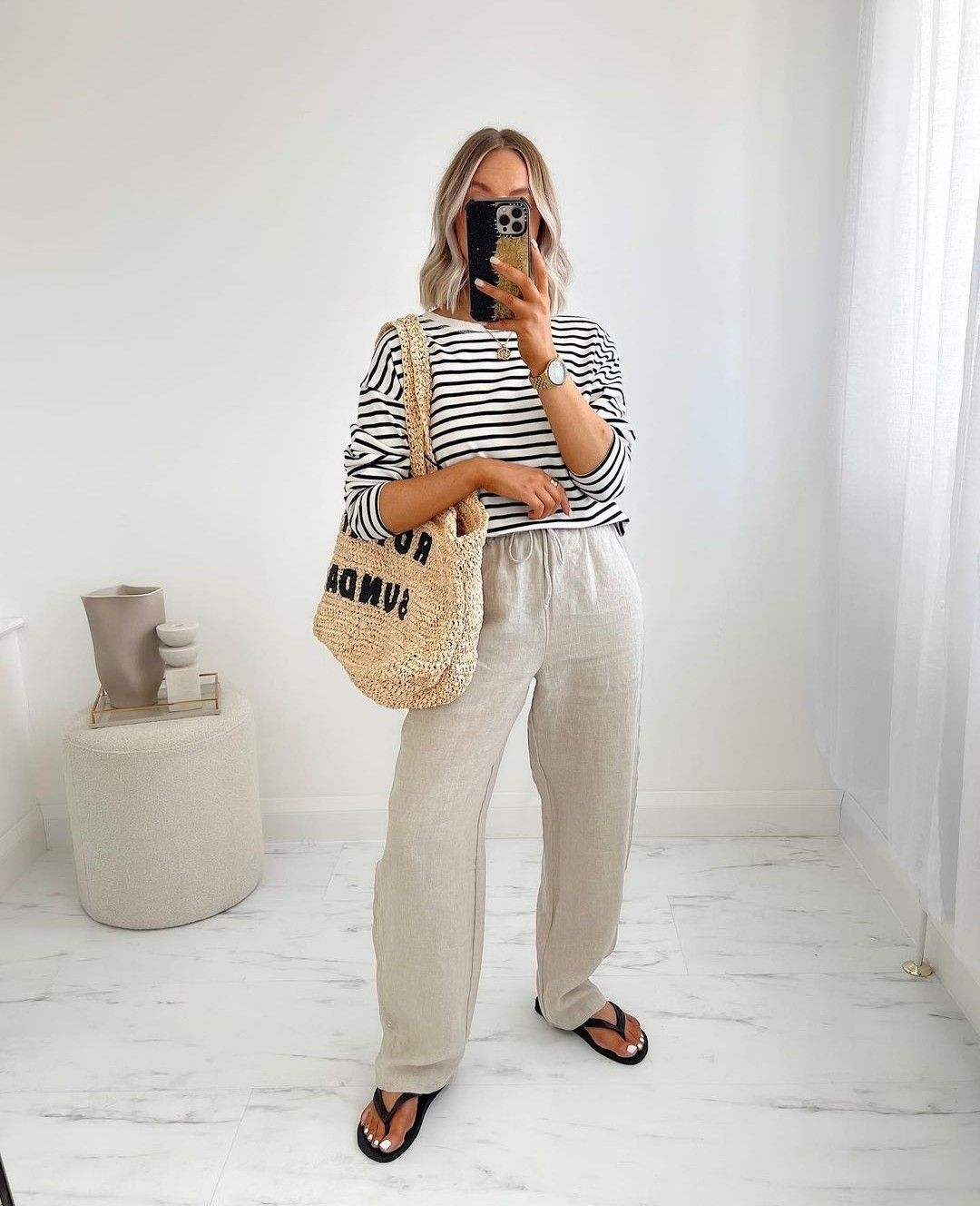 theLime собрал несколько стильных идей, с чем носить льняные штаны: