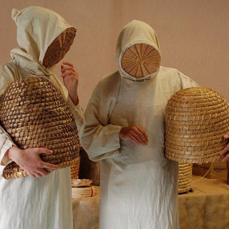 Пользователи соцсетей увидели средневековый костюм пчеловода и сразу поняли - это отличный вариант для Хэллоуина. Помимо балахонистой одежды с капюшонами люди также использовали плетенные маски. В качестве дома для насекомых использовались деревянные кадки, которые также плелись вручную.