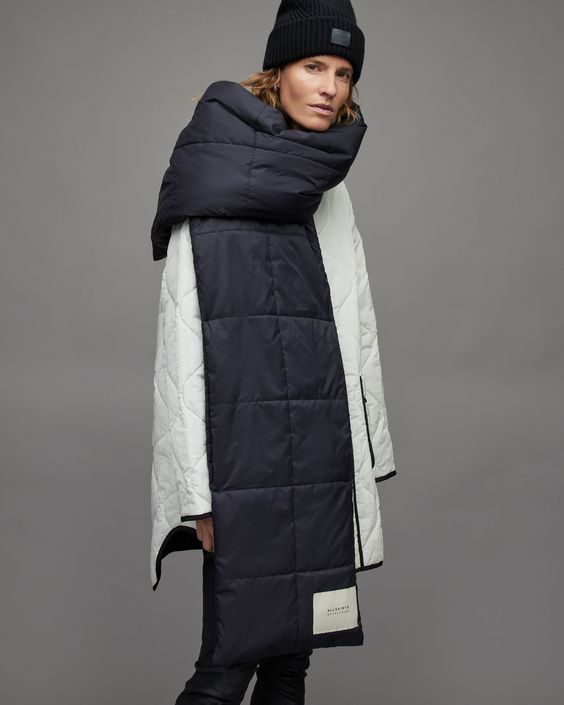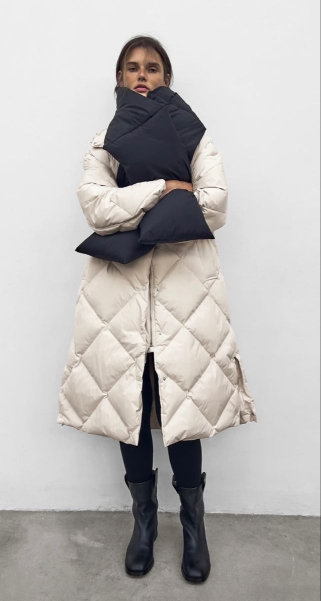 Носите модные шарфы-пуховики с пальто или пуховиками, надевая не только на шею и плечи, но и вместо шапки.