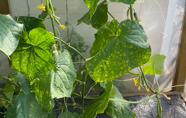 Чем страшно это заболевание? На первый взгляд, огурцы продолжают расти дальше - плоды вяжутся, они растут обычные и дают нормальный урожай, но листовая поверхность, получающая солнечные лучи и где происходит фотосинтез, а только через фотосинтез растение может усваивать питательные вещества из почвы, уменьшается. Поскольку листья не работают на растение, питание для него становится все меньше и меньше, растение начинает засыхать, уже заложившиеся огурцы желтеют и не вызревают, и со временем растение погибает", - пояснил автор видео.