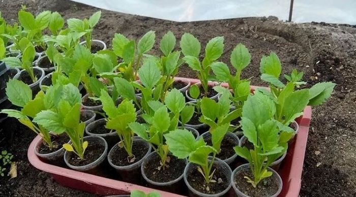 2. При пикировании корешки астр подрезаем и растения углубляем в приготовленную ямку по семядольному листочку.