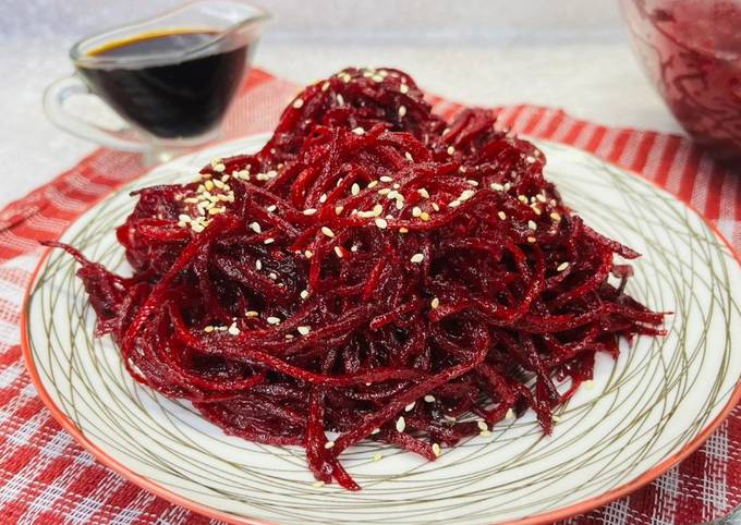 Свекла по-корейски – это вкусный и простой салат из сырой свеклы, его можно подавать как закуску, гарнир к мясу или рыбе или даже просто перекусить. Свекла богата минеральными солями, органическими кислотами и фолиевой кислотой. Она – рекордсмен по концентрации бора и марганца, а также один из лидеров по содержанию железа. Вещества в составе свеклы улучшают обмен веществ, активизируют работу кроветворения и укрепляют иммунитет.